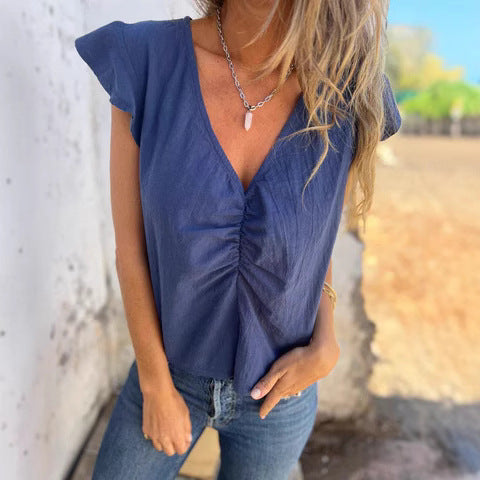 Apportez une touche d'élégance à votre garde-robe avec cette superbe blouse pour femme à volants et manches courtes, conçue avec de délicats plis. Cette blouse a été conçue pour une utilisation polyvalente et est parfaite pour des sorties décontractées ainsi que pour des occasions semi-officielles.