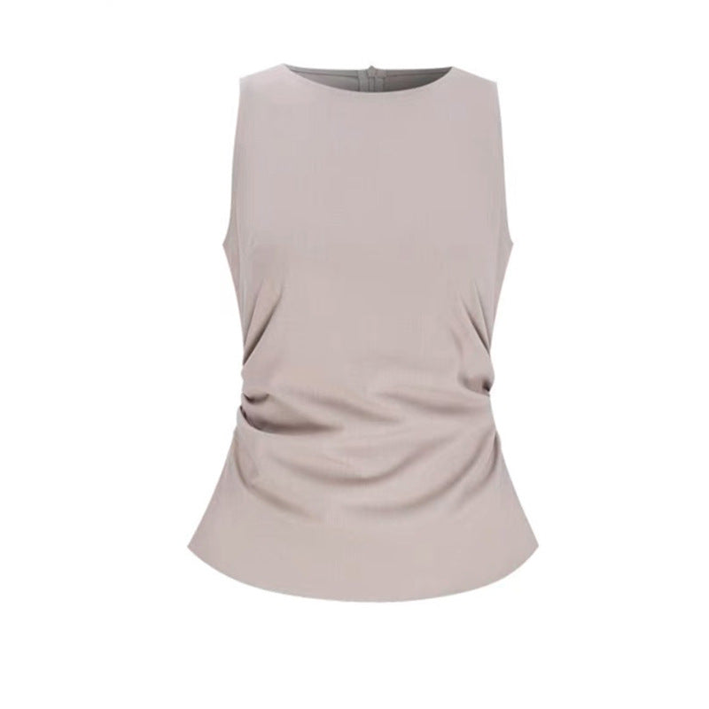 Élevez votre garde-robe avec notre blouse sans manches froncée pour femmes, conçue pour la polyvalence et le confort. Ce haut élégant présente un délicat froncage sur les côtés, créant une silhouette flatteuse qui complète toutes les morphologies.