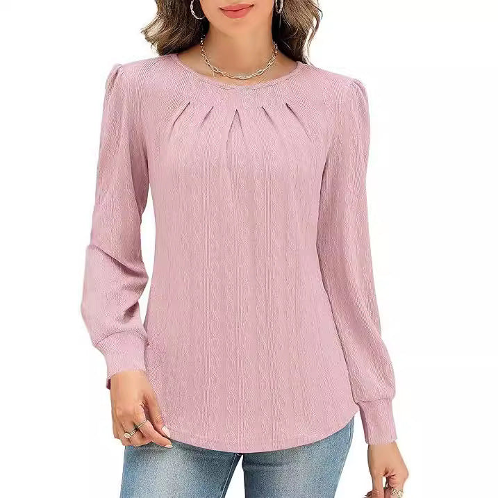 - Design : La blouse dispose d'un élégant col rond et de charmantes plis qui ajoutent une touche particulière au look.