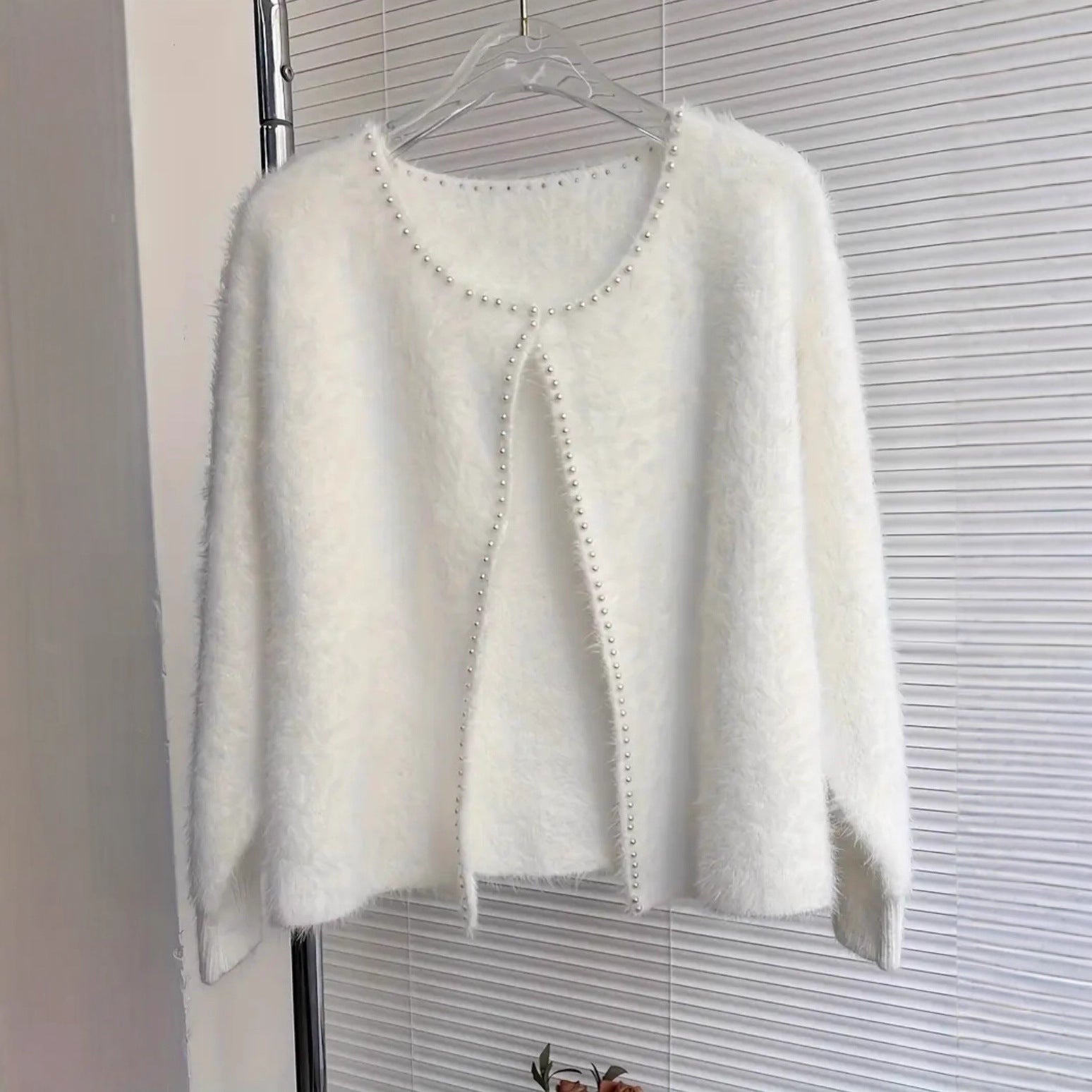 Dames cardigan en peluche avec boutons en perles et coupe décontractée Chic und Stil