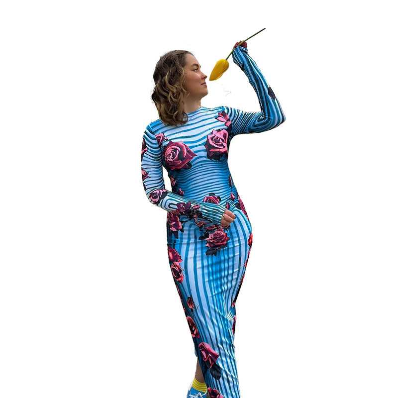 Élevez votre sens de la mode et découvrez la beauté de notre robe Bodycon à rayures florales pour femmes dès aujourd'hui !