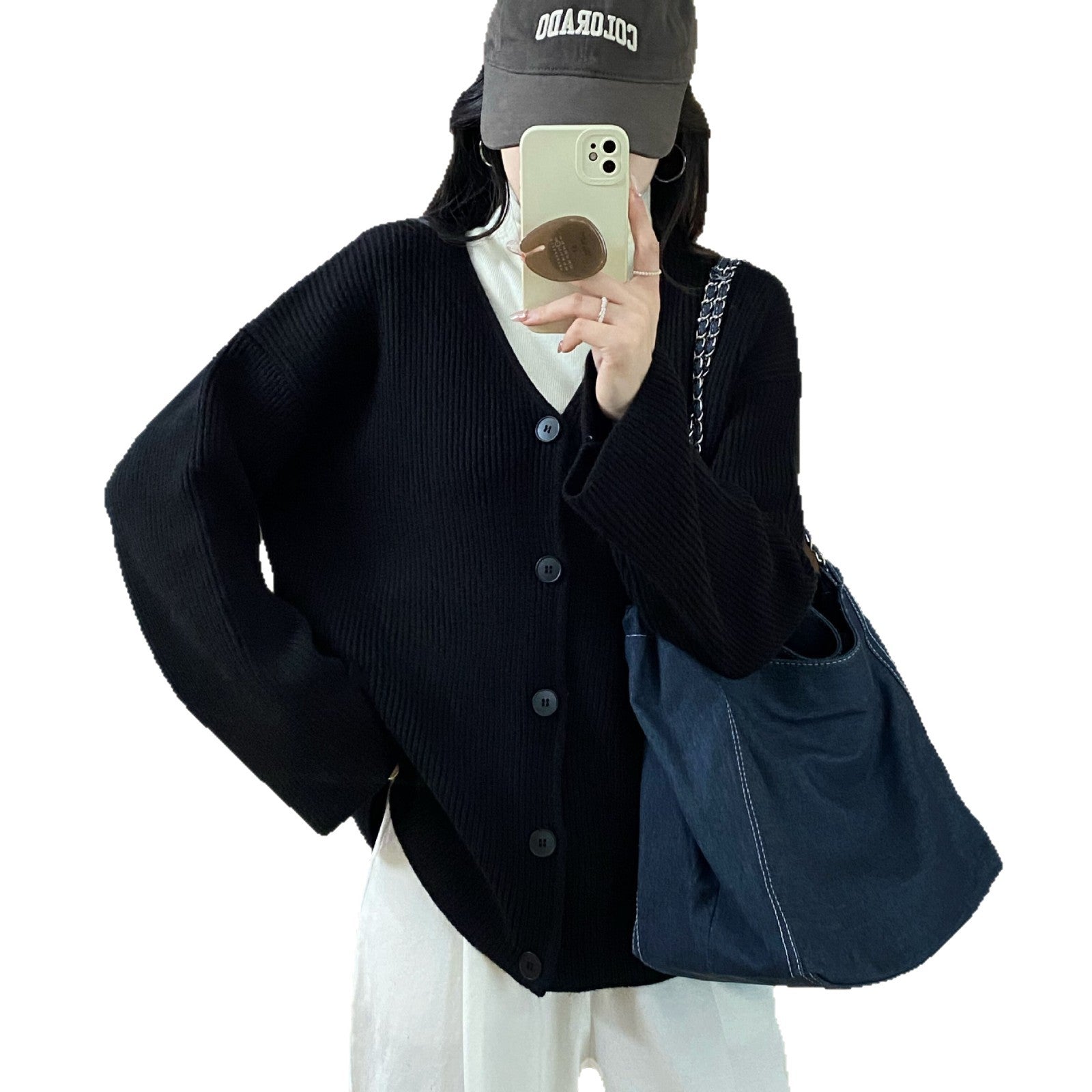 Dames gros tricot cardigan avec poches spacieuses et décolleté en V profond Chic und Stil