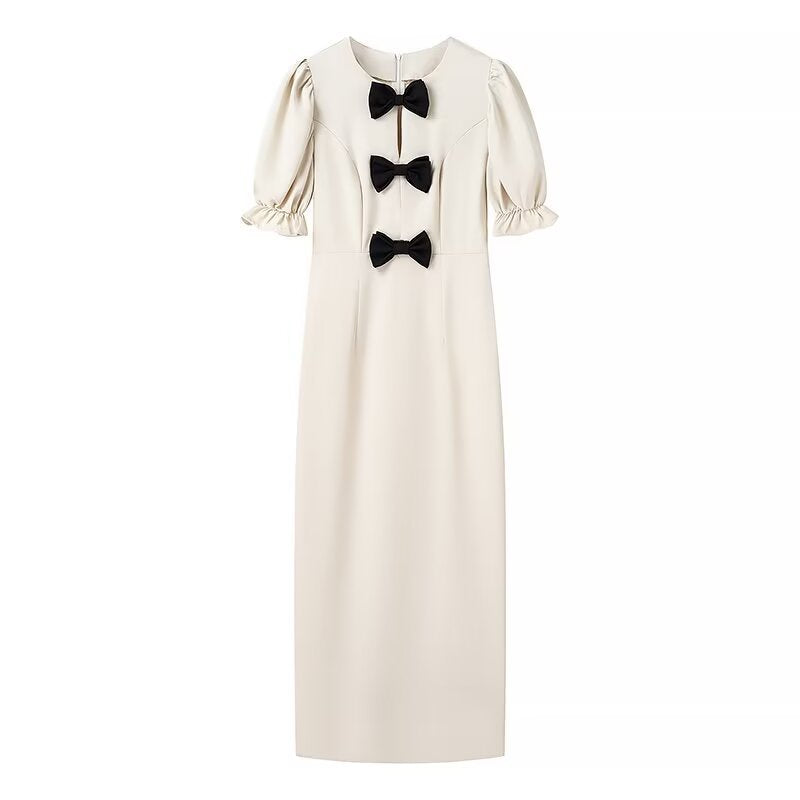 Dames Robe maxi élégante avec détail de nœud unique et conception à manches bouffantes Chic und Stil