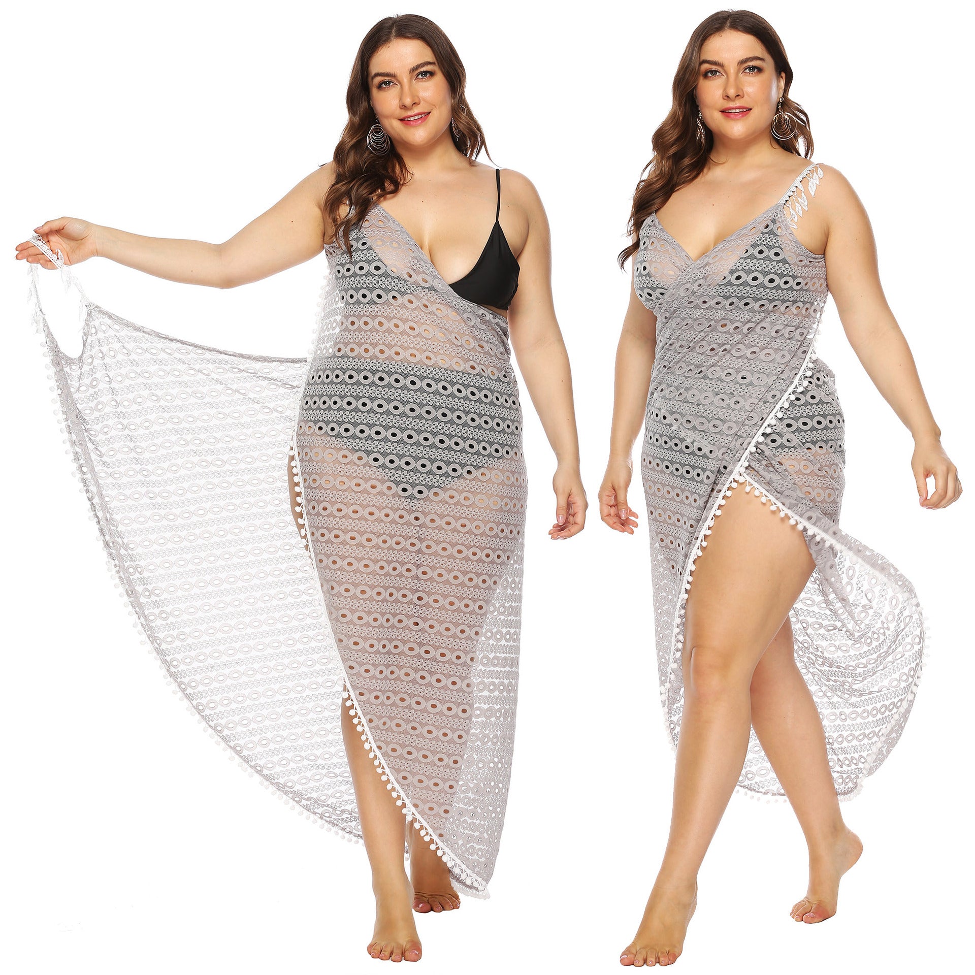 Dames Élégant Transparent Dentelle Couvrir Robe de Plage Chic und Stil