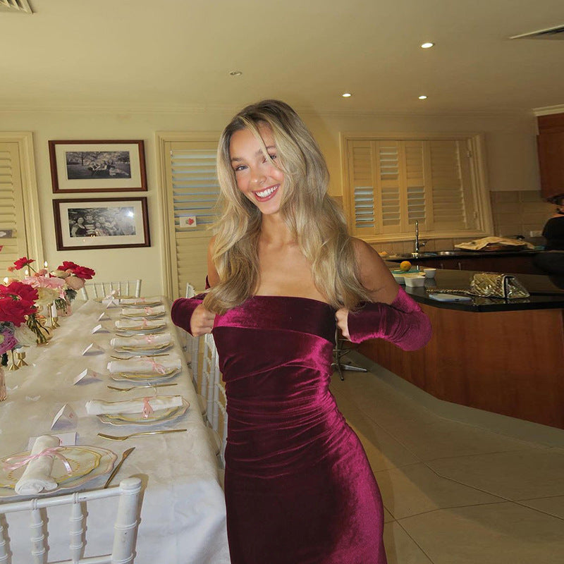 Robe de soirée off-shoulder en velours pour femmes Chic und Stil