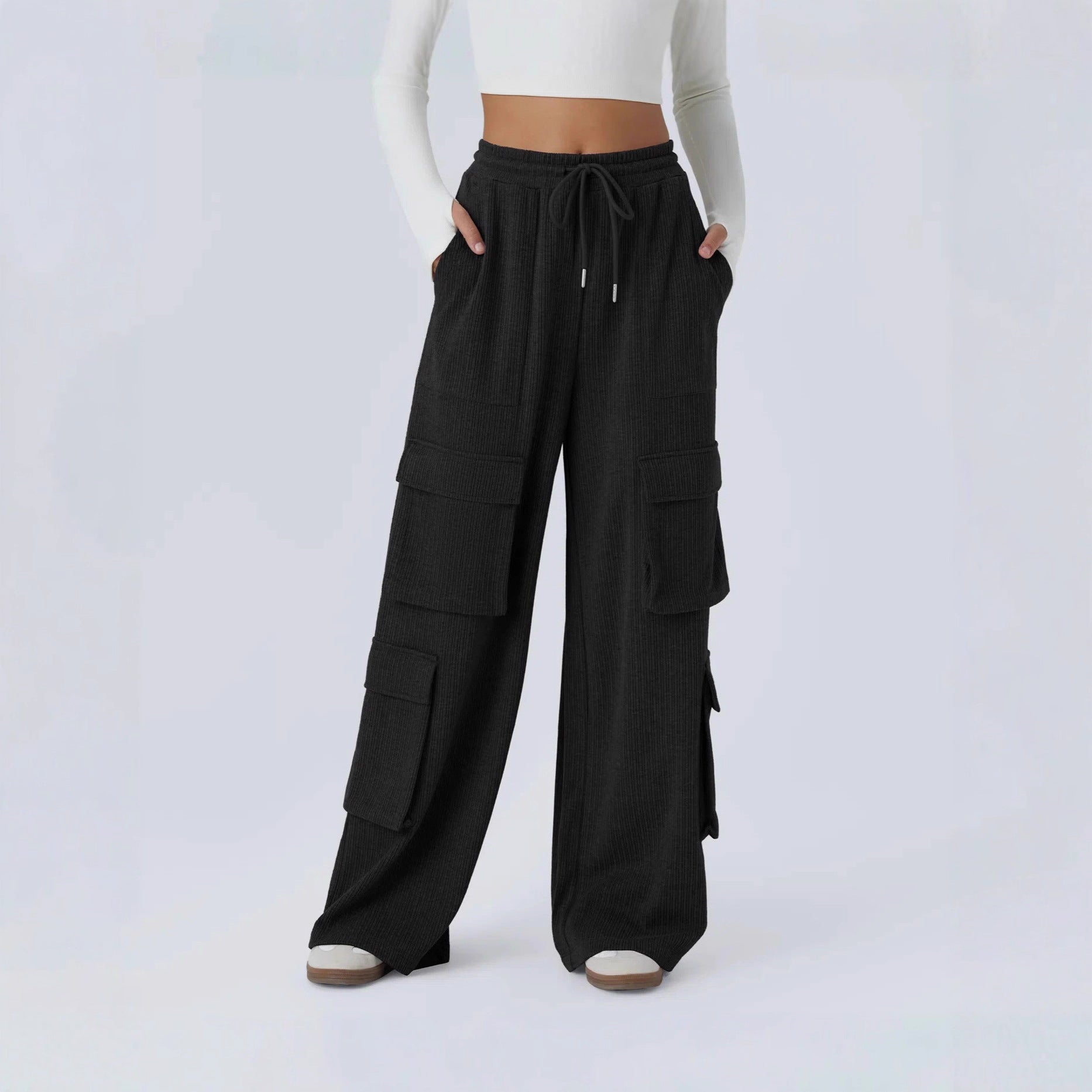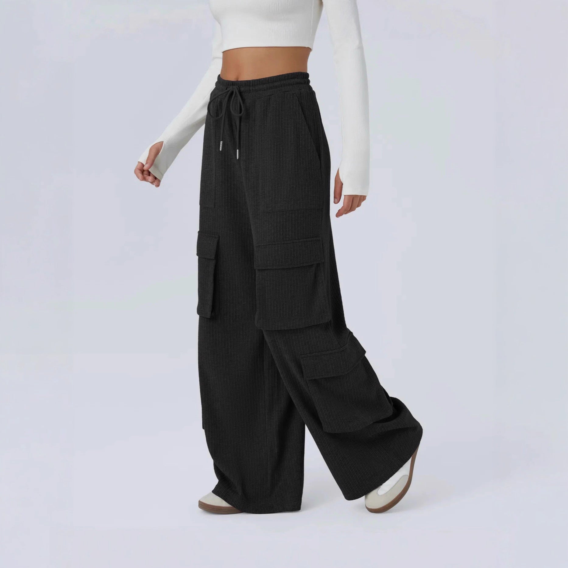 Ladies cargo pants with a wide cut and practical side pockets Chic and Style