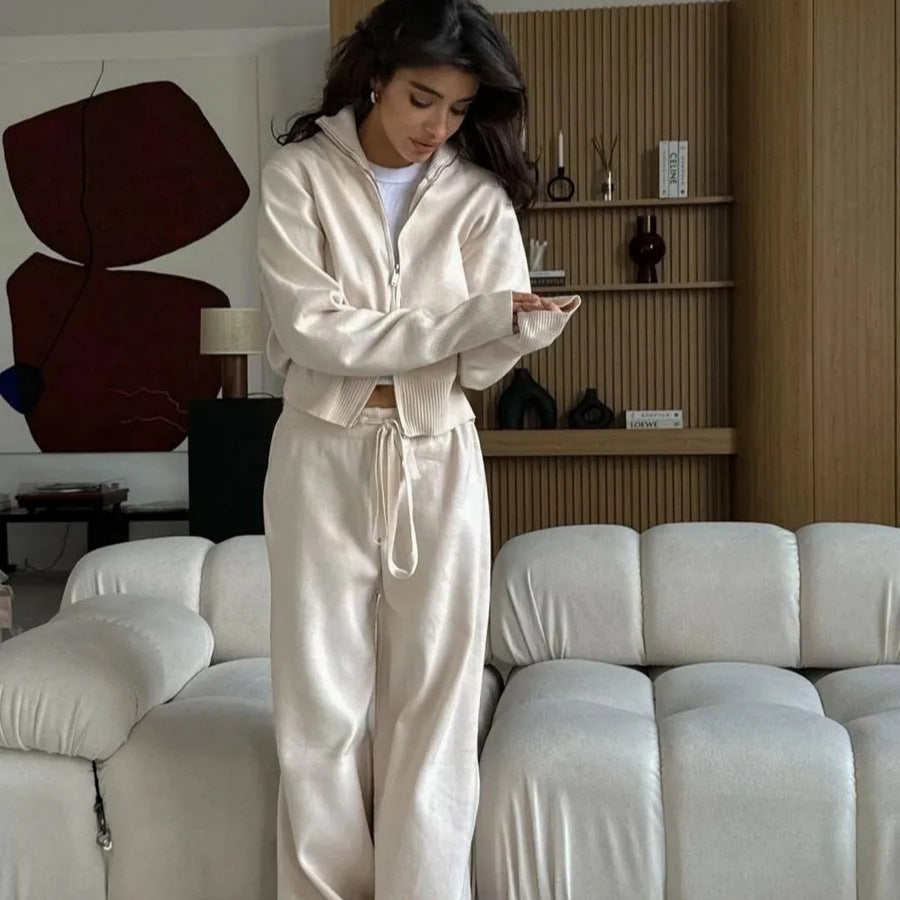 Women comfortable two-piece set with cropped sweatshirt and wide pants Chic and Style