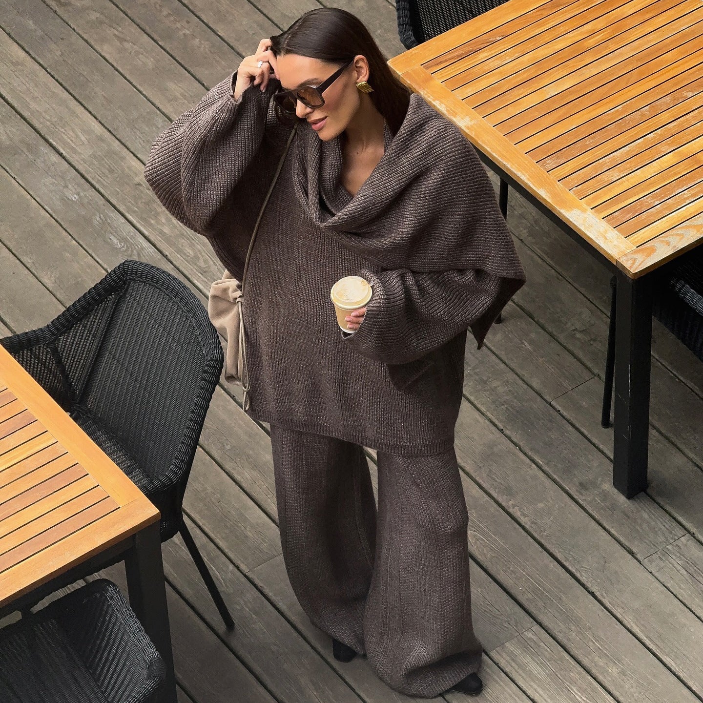Discover the high-quality knit set for women from Chic und Stil, which combines comfort and elegance. This set consists of a loose and casual top and palazzo pants, perfect for hours of relaxation. The soft and breathable fabric offers excellent comfort and gives a luxurious look.