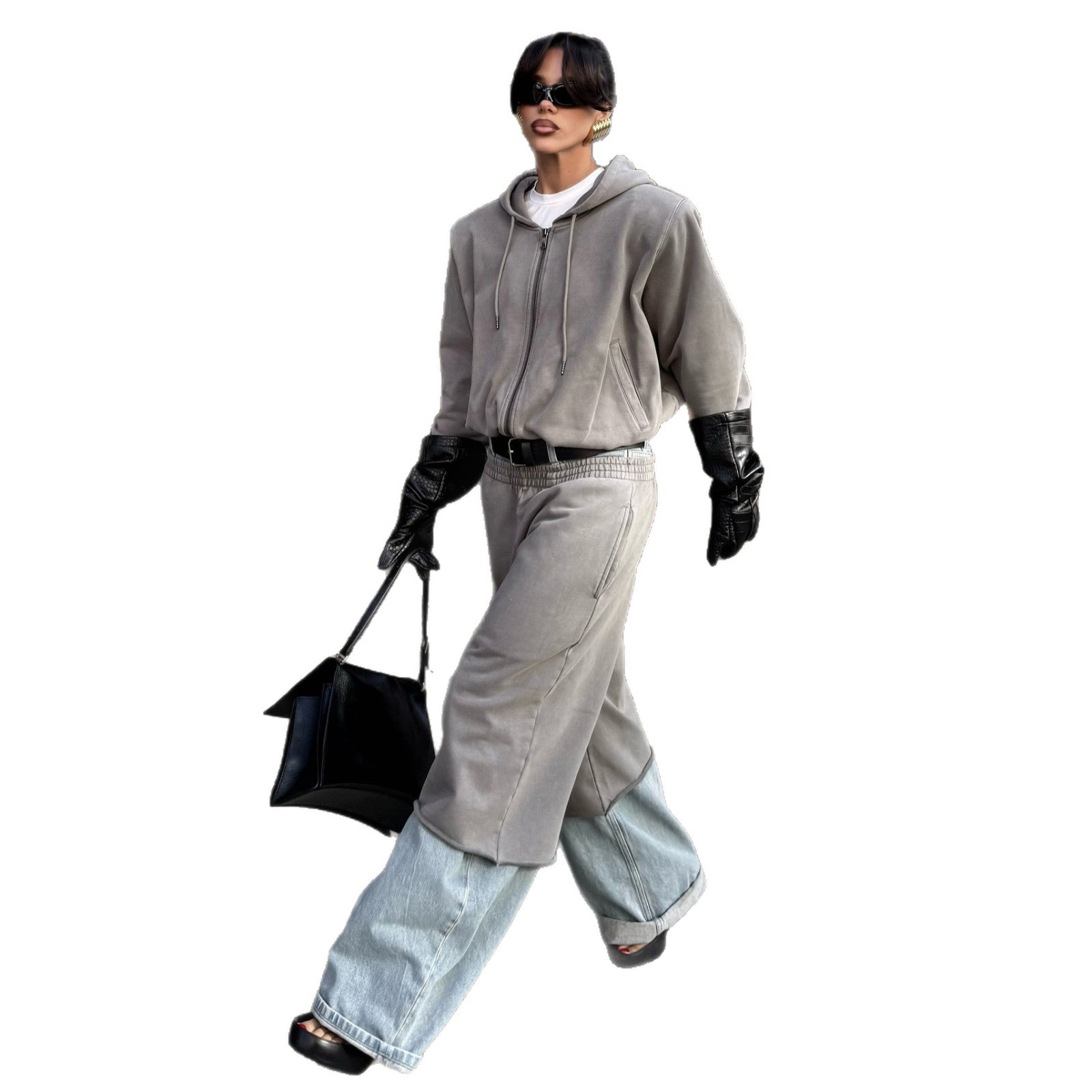 Women Casual Knit Set with High Neck and Loose Pants Chic und Stil