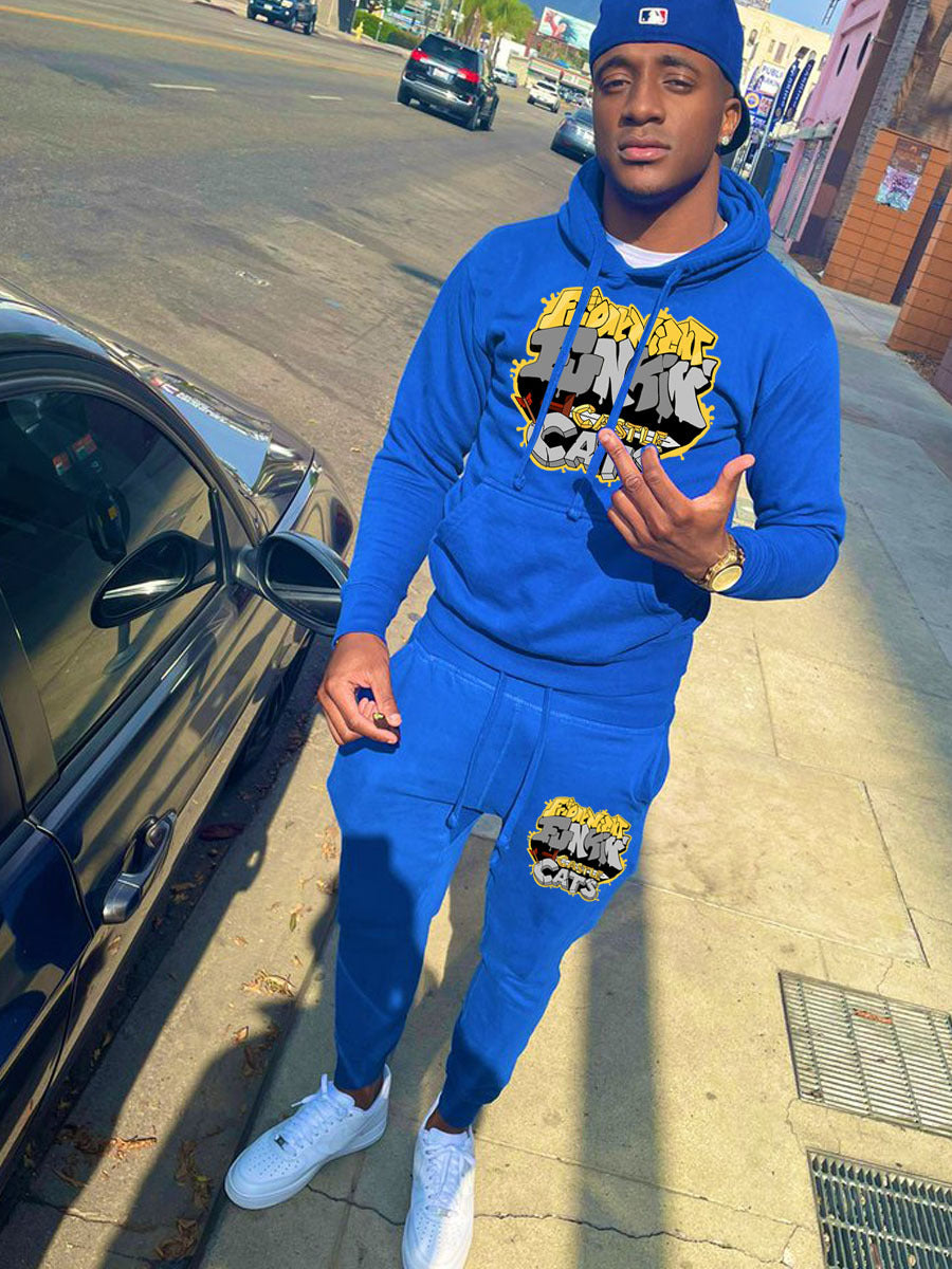 - Creative graphic design: Eye-catching print on the hoodie and joggers, highlighting your individual style.