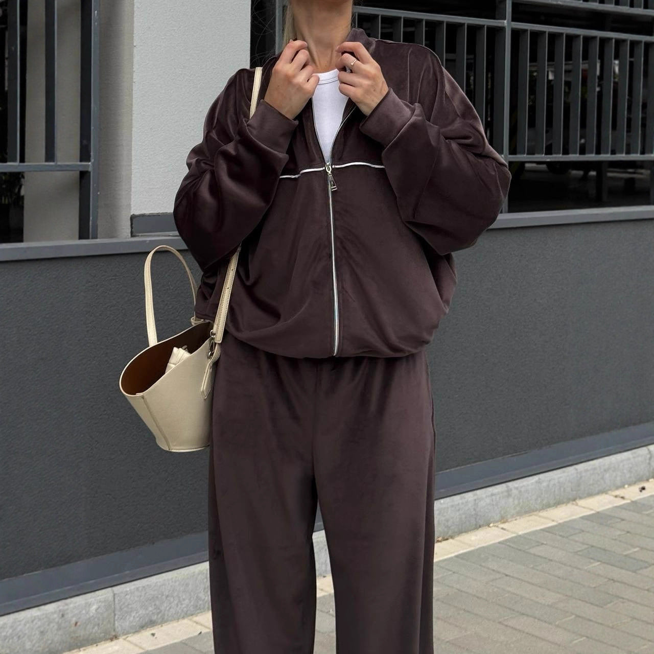 Chic and Style women's sporty velour lounge set with full zip and wide pants