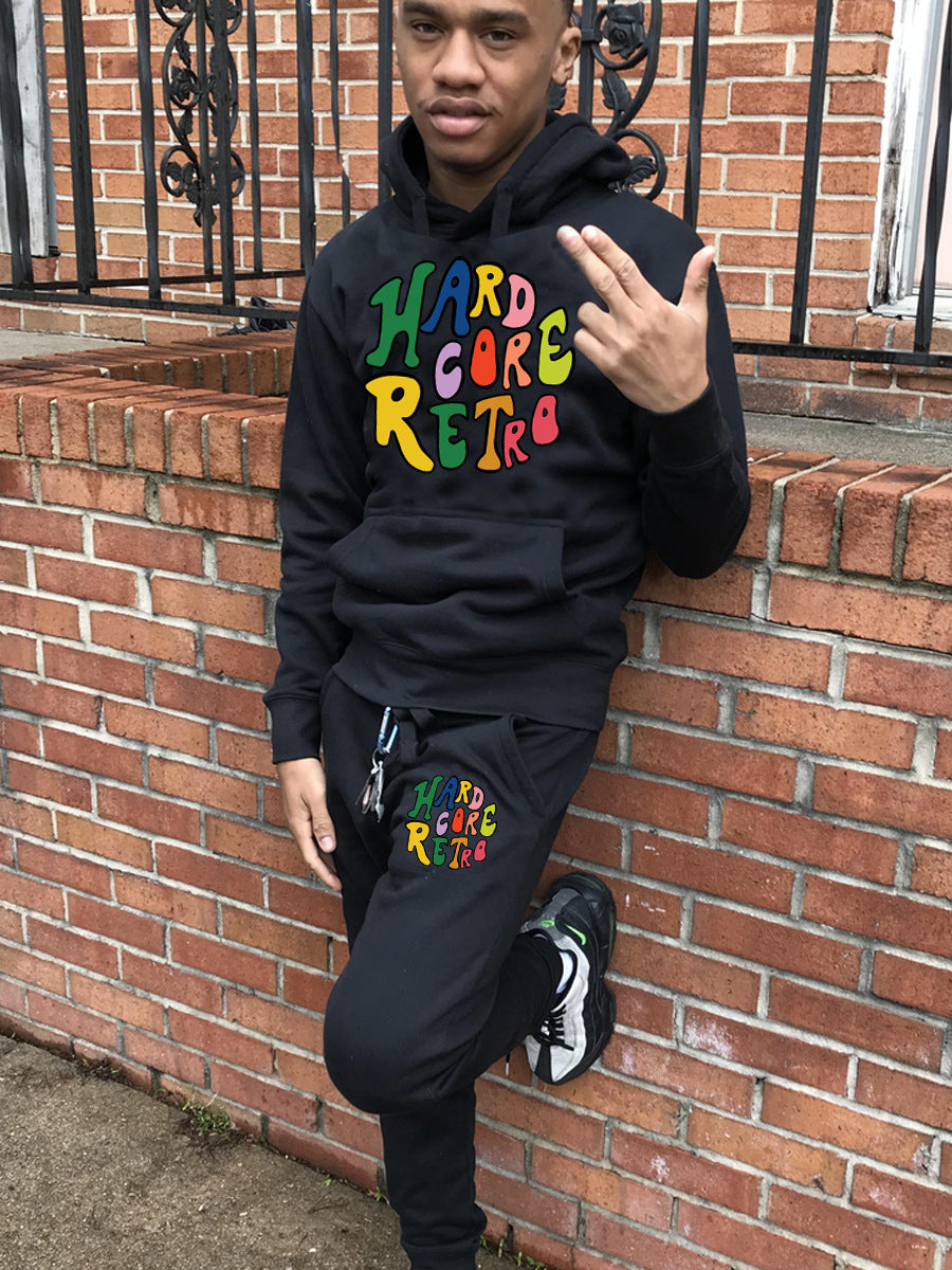 Women’s sporty hoodie and jogger pants set with an eye-catching retro design Chic und Stil
