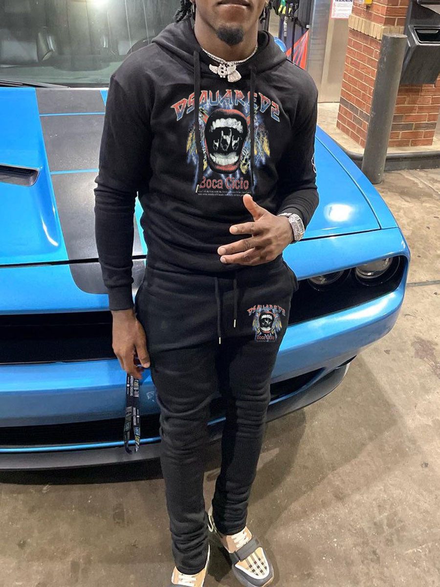 Men's Hoodie and Training Pants with Chic and Artistic Print