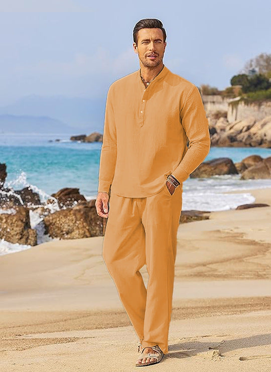 Light beach pants for men and stylish long sleeve shirt Chic und Stil