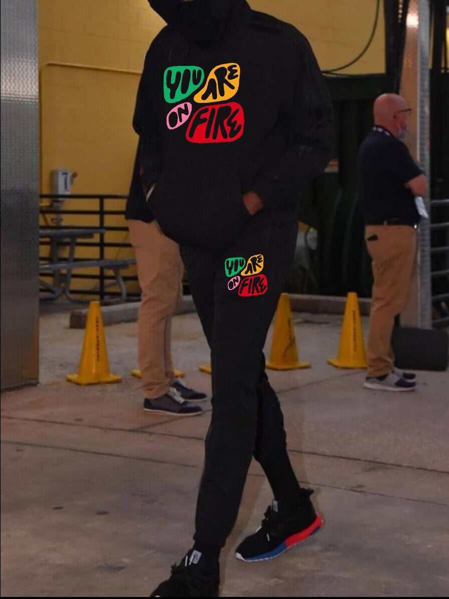 Hoodie and jogger pants set for men with creative print Chic und Stil