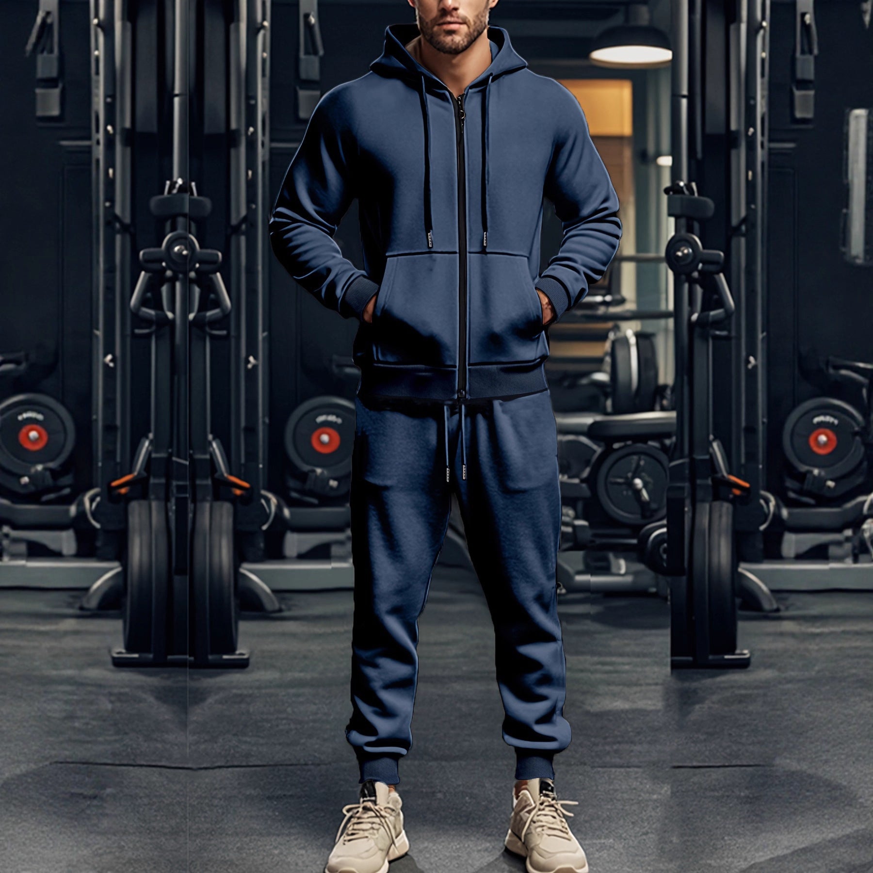 Men's sporty hoodie and jogger pants set with full zip and elastic waist Chic and Style