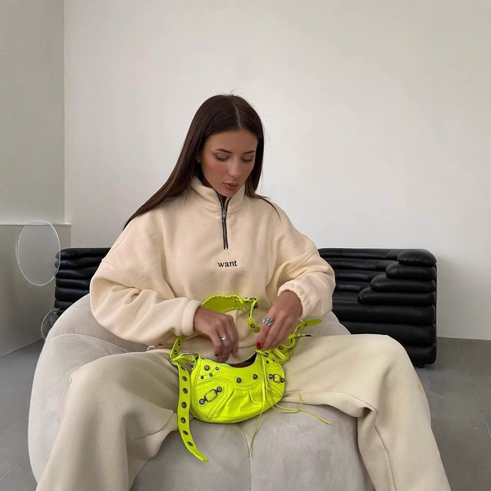 Trendy women's fleece pullover with half-zip and dropped shoulder Chic and Style