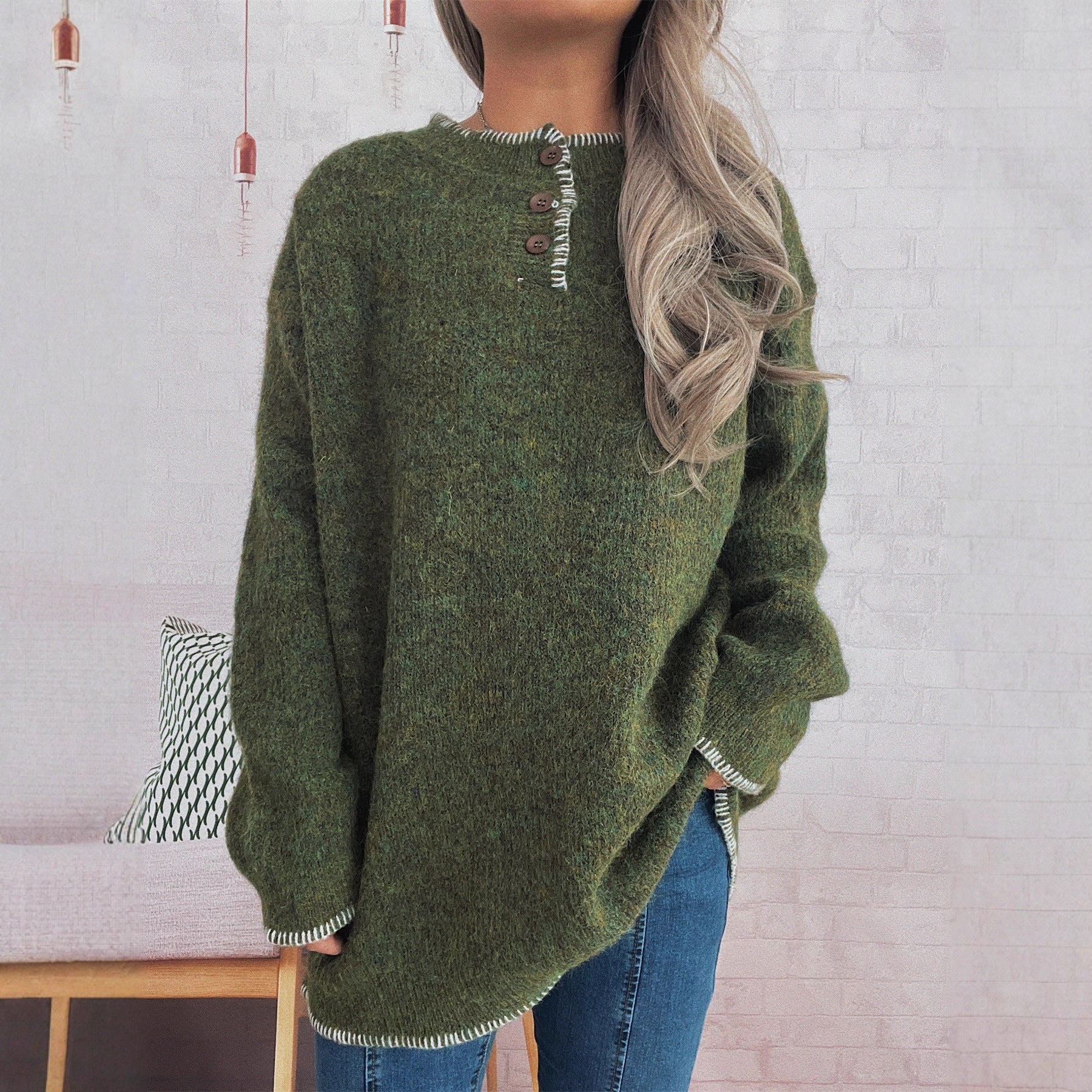 Pull en tricot oversize pour dames avec patte de boutonnage Chic und Stil