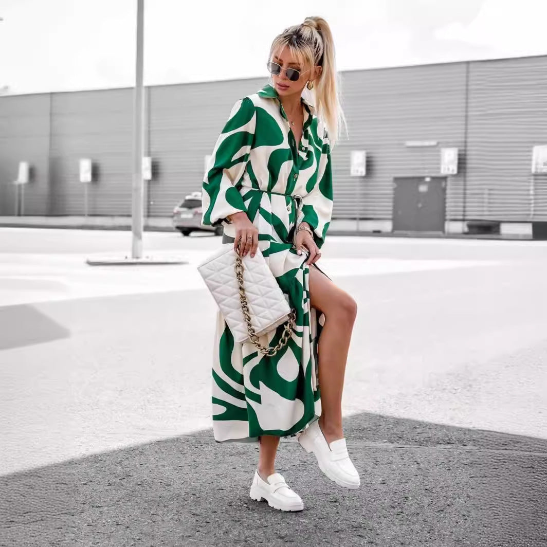 Découvrez la élégante robe chemise maxi pour femmes de Chic und Stil, qui allie style et confort. Cette robe se distingue par sa coupe moderne et son motif accrocheur qui assure un look contemporain.