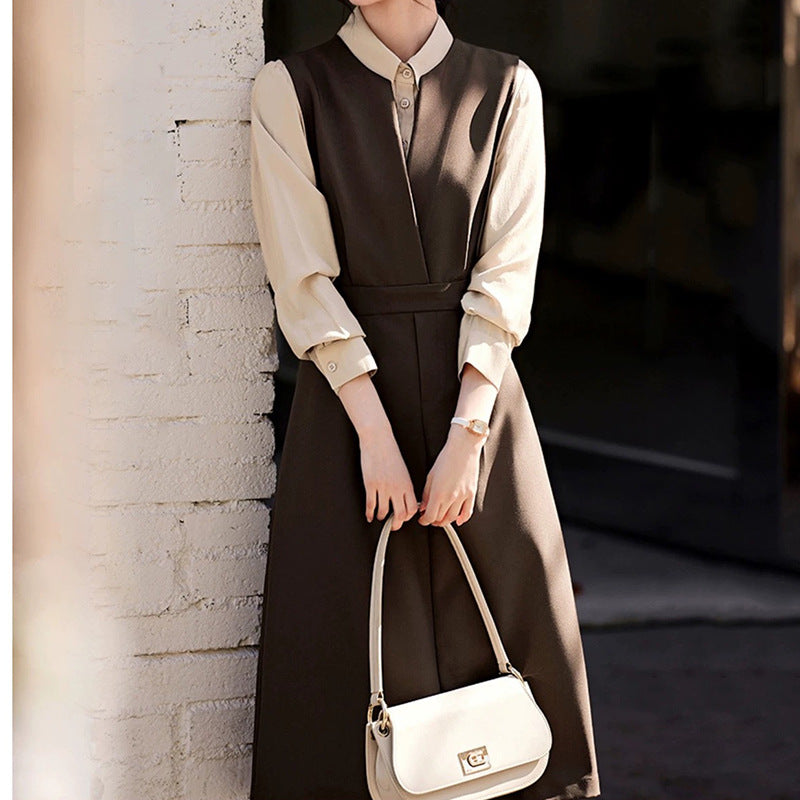 - Design en double tissu : La robe combine un haut de chemise raffiné avec une jupe fluide, créant un look polyvalent adapté aux occasions décontractées comme formelles.