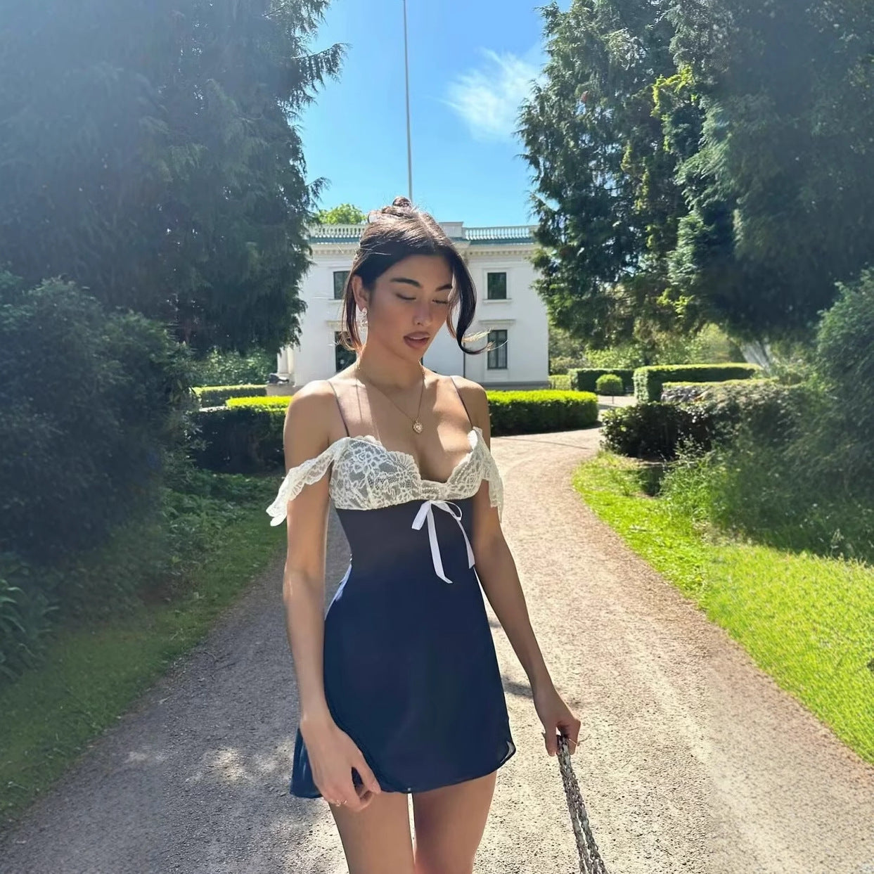 • Conception : Design féminin avec un haut en dentelle romantique et de délicates volants sur les bretelles, complété par un mignon ornement en nœud qui achève le look.