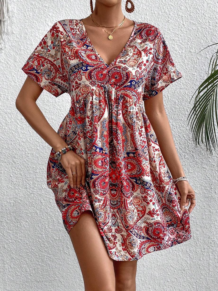Découvrez notre robe d'été élégante et aérienne, idéale pour des occasions estivales. Avec un décolleté en V tendance et de charmants détails volantés, cette robe allie confort et accents à la mode.