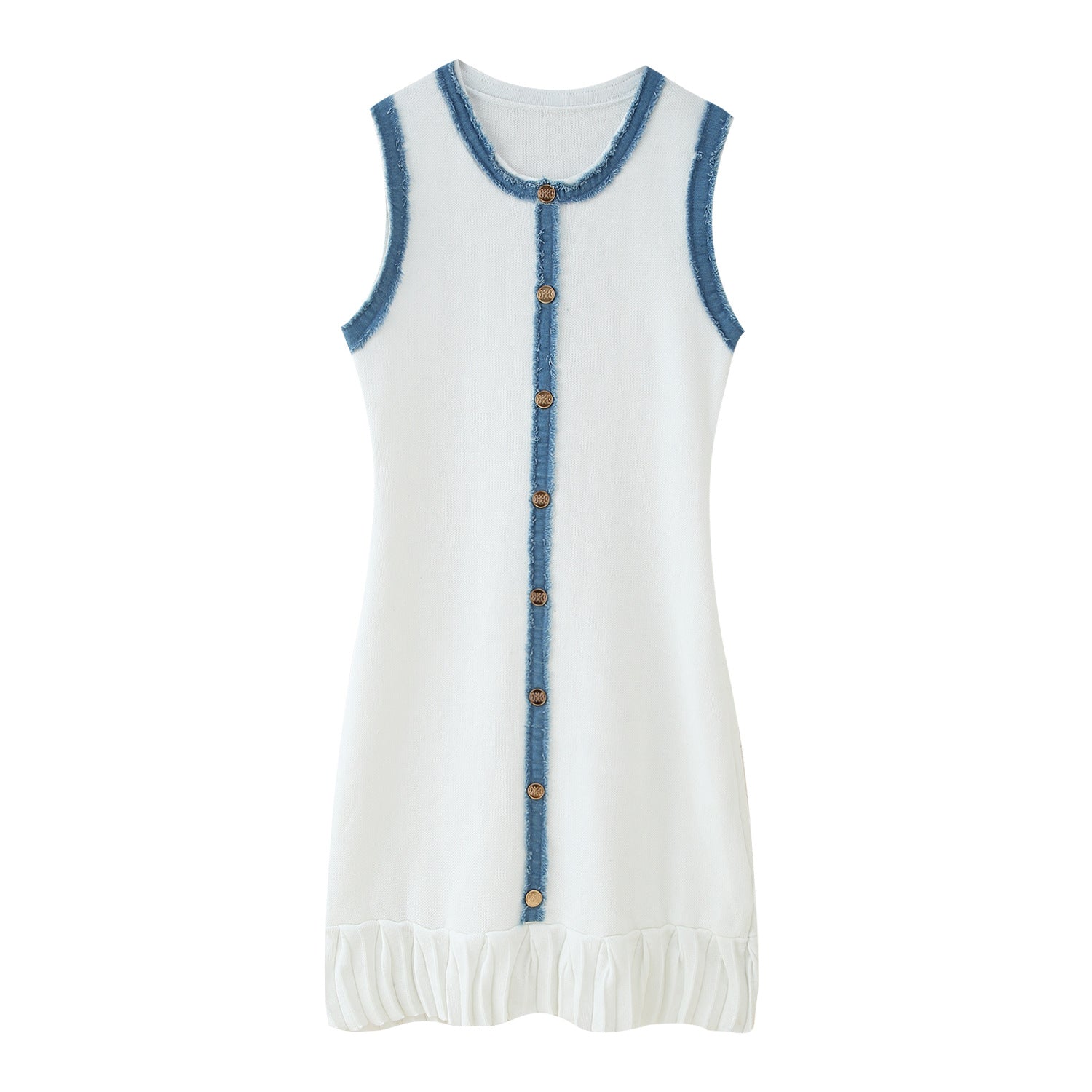 Robe d'été sans manches pour femmes avec détail de bouton et ourlet volanté Chic und Stil