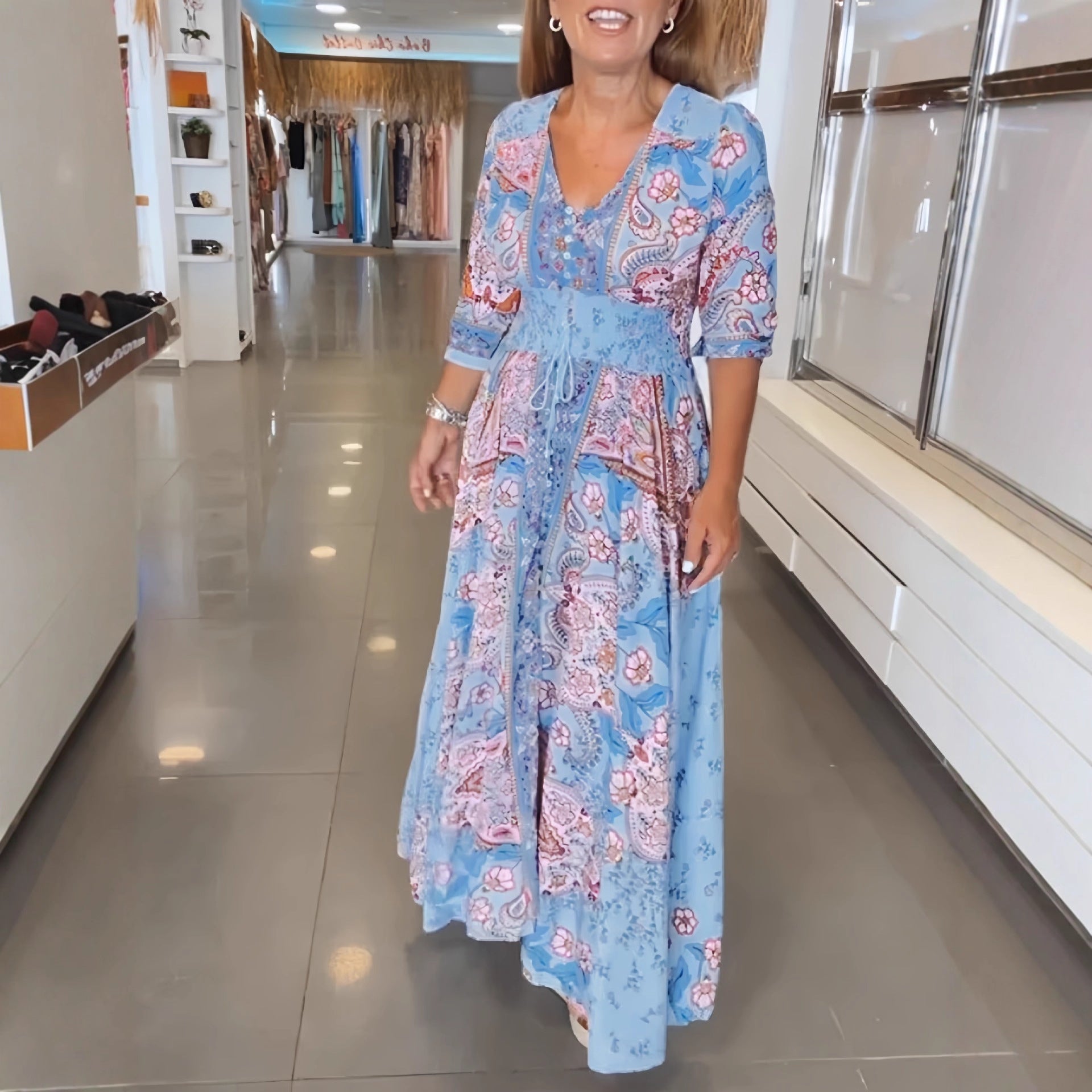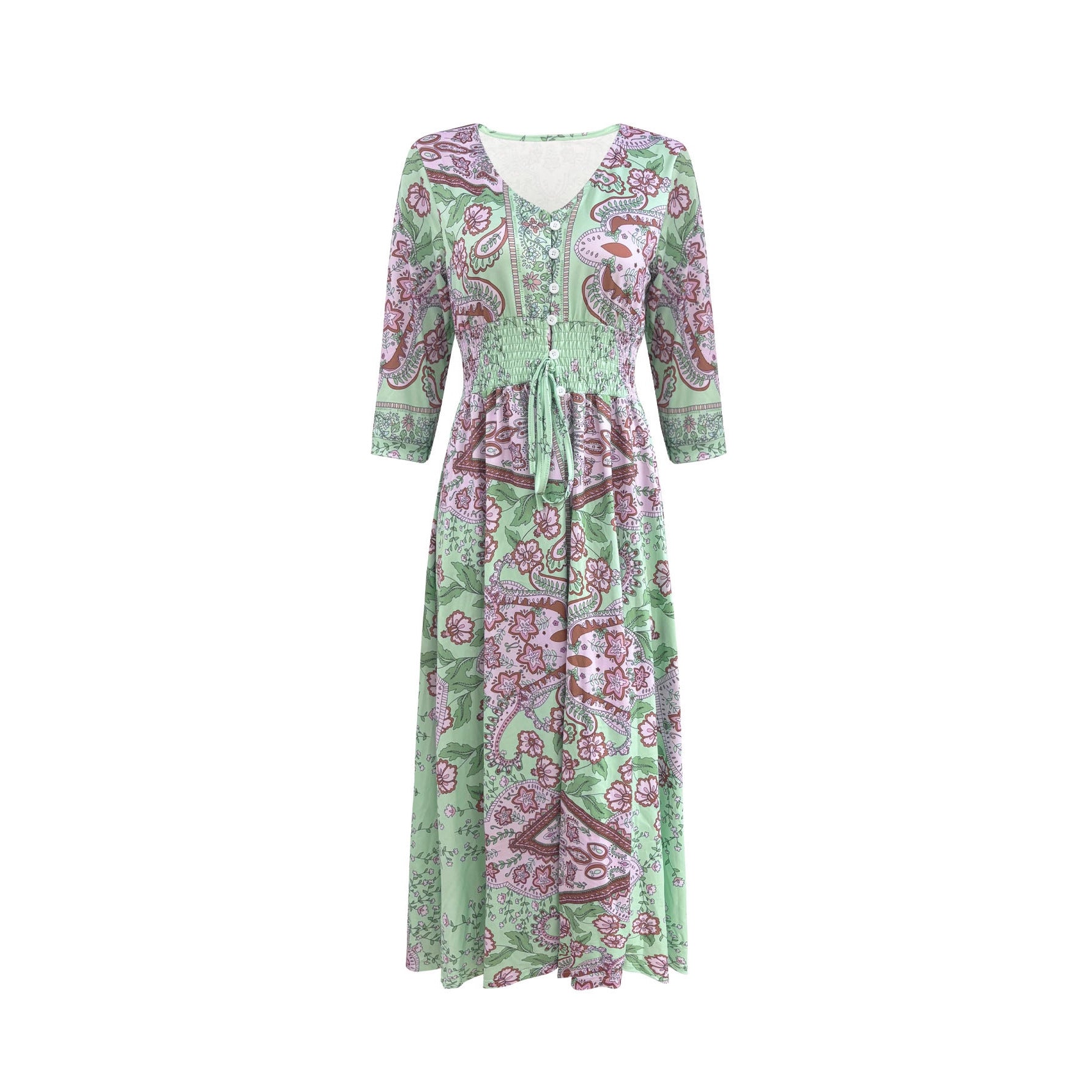 Découvrez notre magnifique robe maxi pour femmes, ornée d'un fascinant motif floral en paisley. Cette robe allie élégance et confort, idéale pour toutes les occasions, que ce soit une journée au bureau ou une sortie estivale.