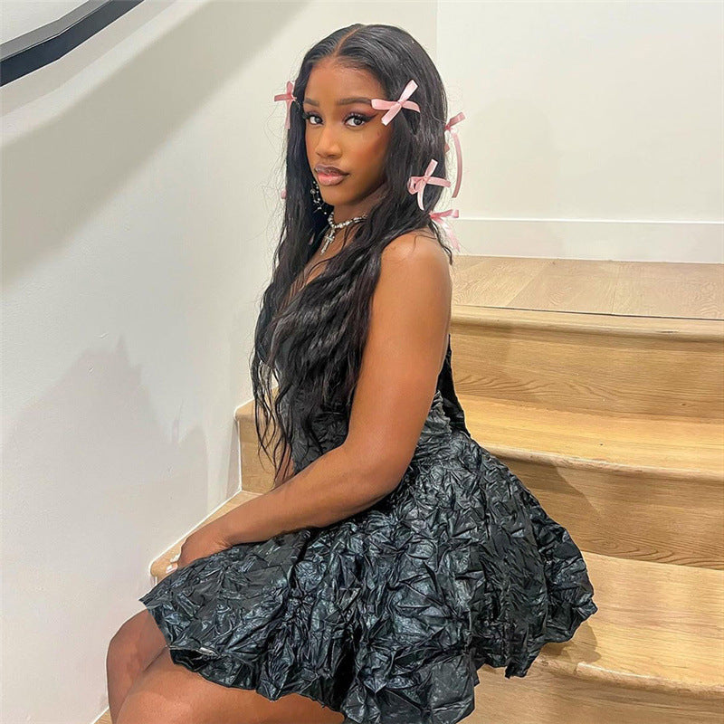 Cette robe courte pour femme est un incontournable de votre garde-robe ! Avec son charmant design à encolure halter et sa unique drape, elle offre un look à la fois tendance et confortable.