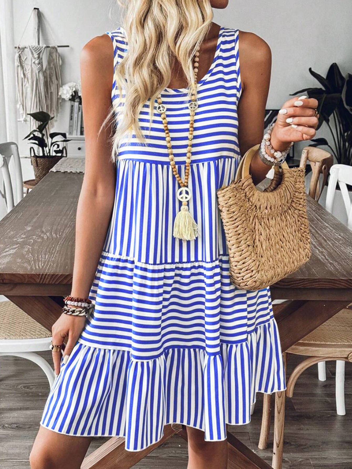 Robe d'été à rayures pour femmes avec un ourlet volant volumineux Chic und Stil