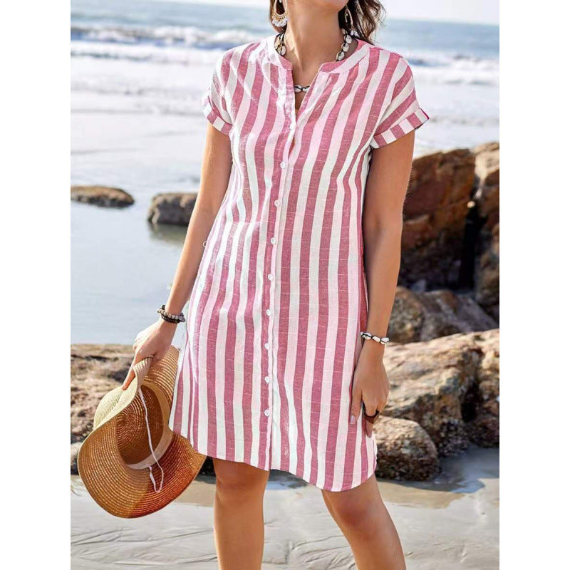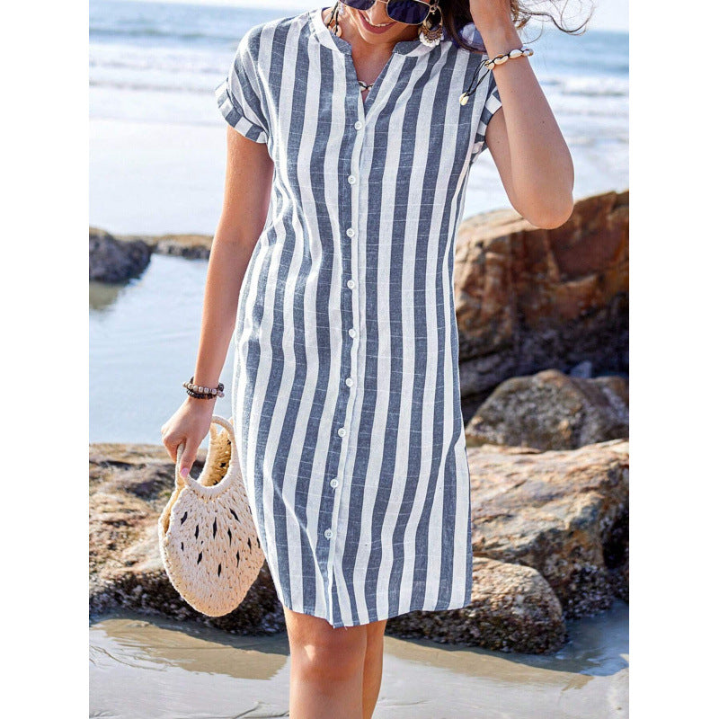 Cette magnifique robe chemise pour femmes se distingue par son design élégant et décontracté, idéal pour les journées chaudes à la plage ou en loisirs. La robe est fabriquée en tissu lin léger de haute qualité, offrant une excellente respirabilité et un grand confort de port.