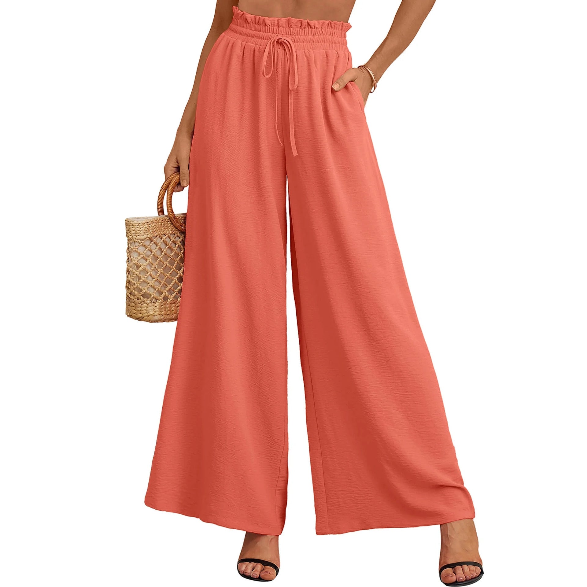 Women Summer Loose and Airy Pants with Elastic Waistband and Ties Chic and Style