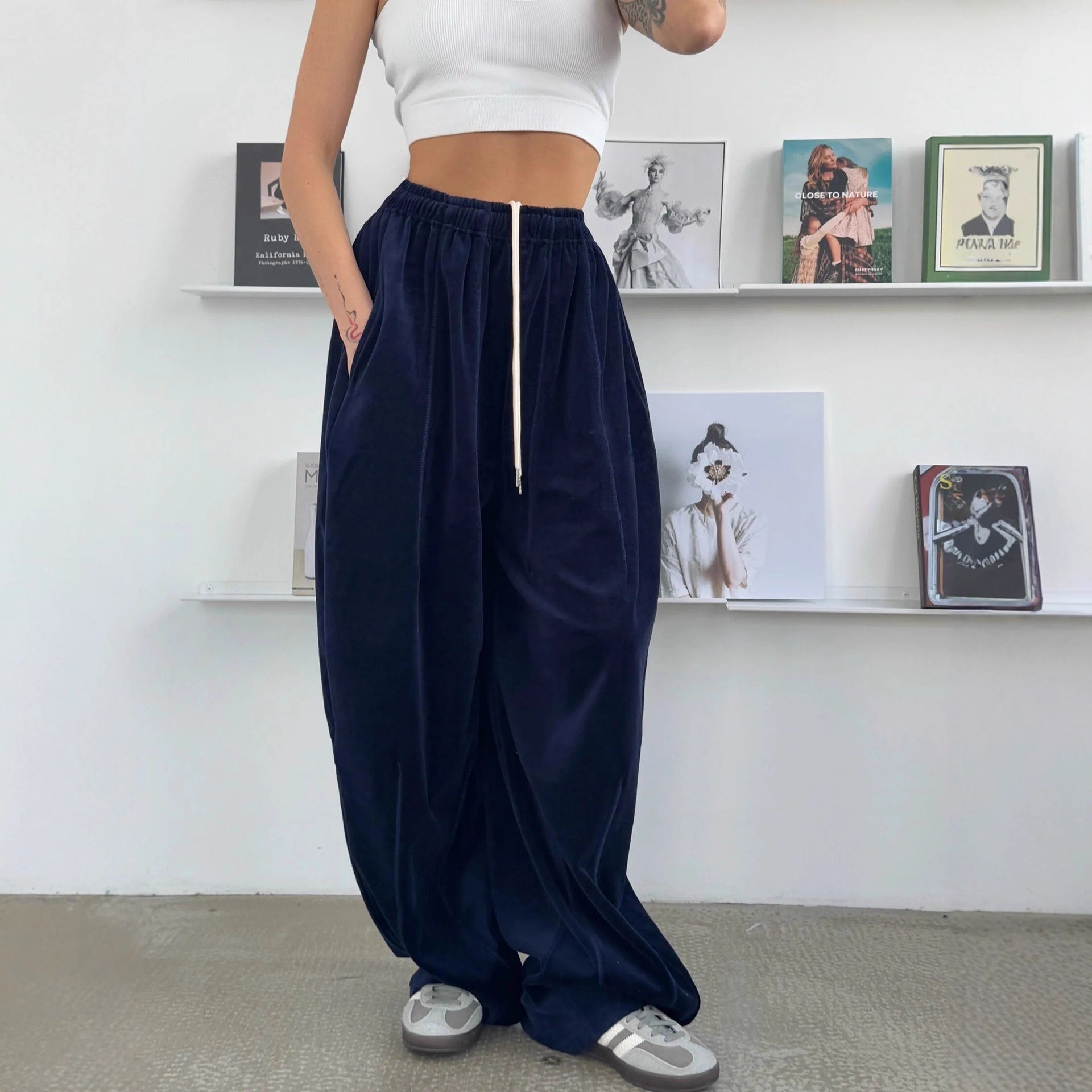 Discover the perfect blend of comfort and style with our women's wide-leg velvet pants. These pants are not only fashionable but also extremely comfortable, making them ideal for relaxed days or active leisure activities.