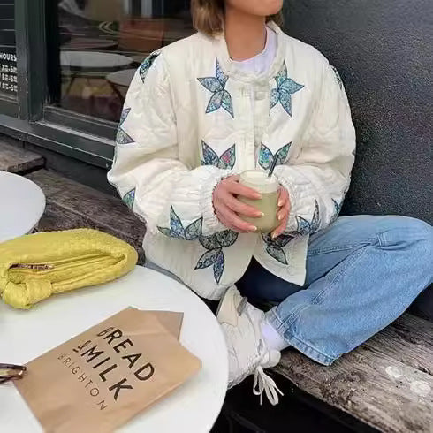Dames blouson matelassé avec design floral et bords élastiques Chic und Stil