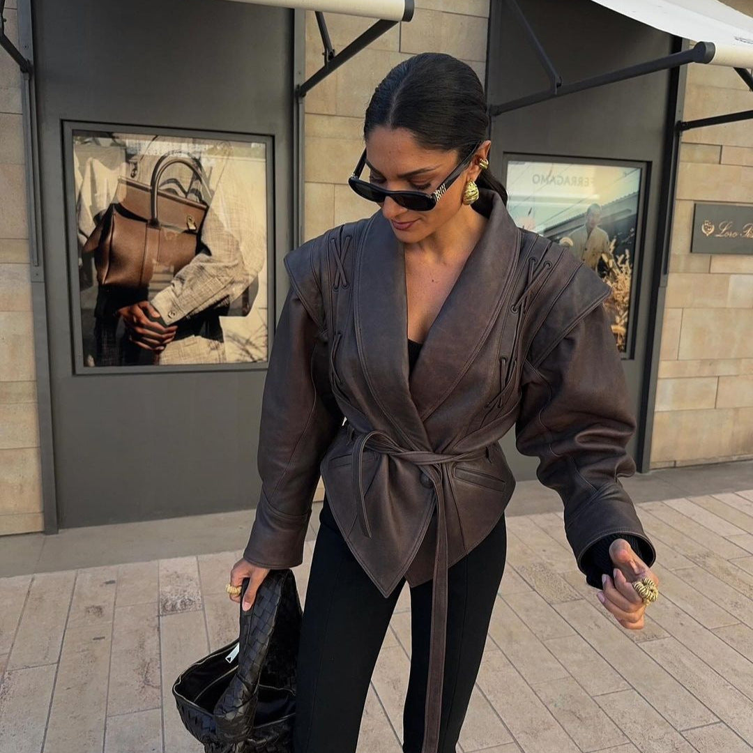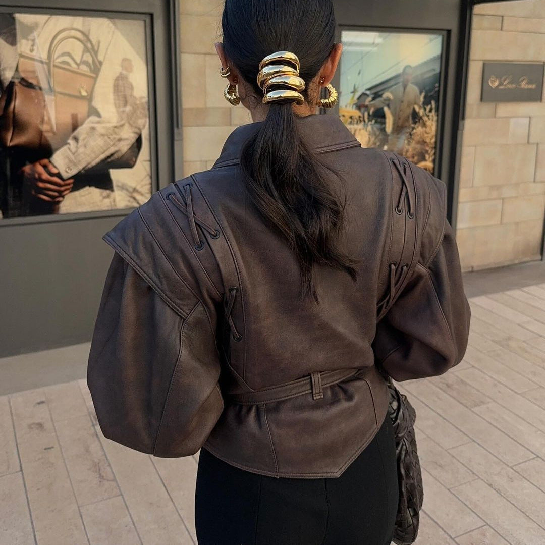 This jacket is a must-have for any fashion-conscious woman who values comfort and style. Invest in timeless elegance with the biker leather jacket from Chic und Stil.