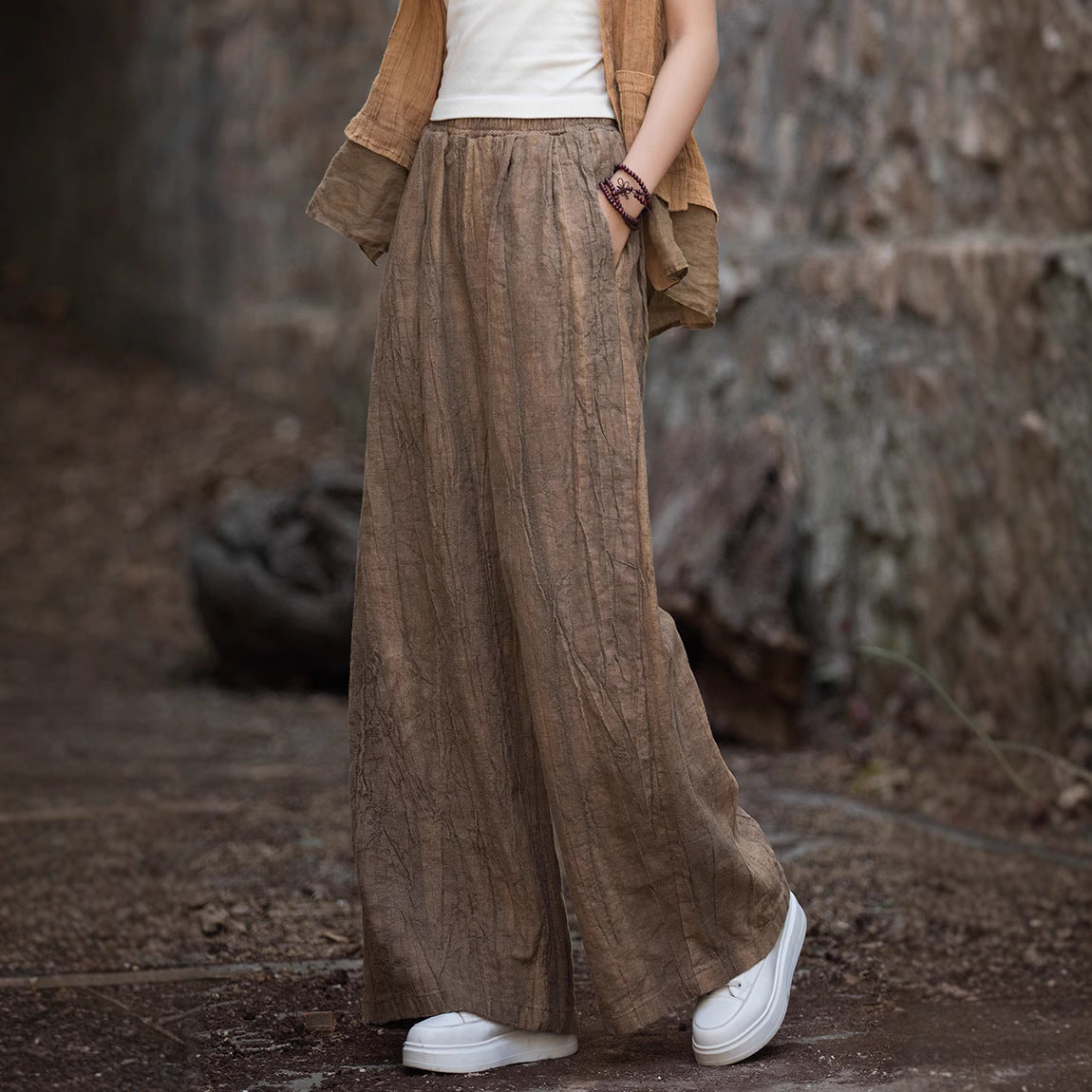 Loose linen pants for women with textured finish Chic und Stil