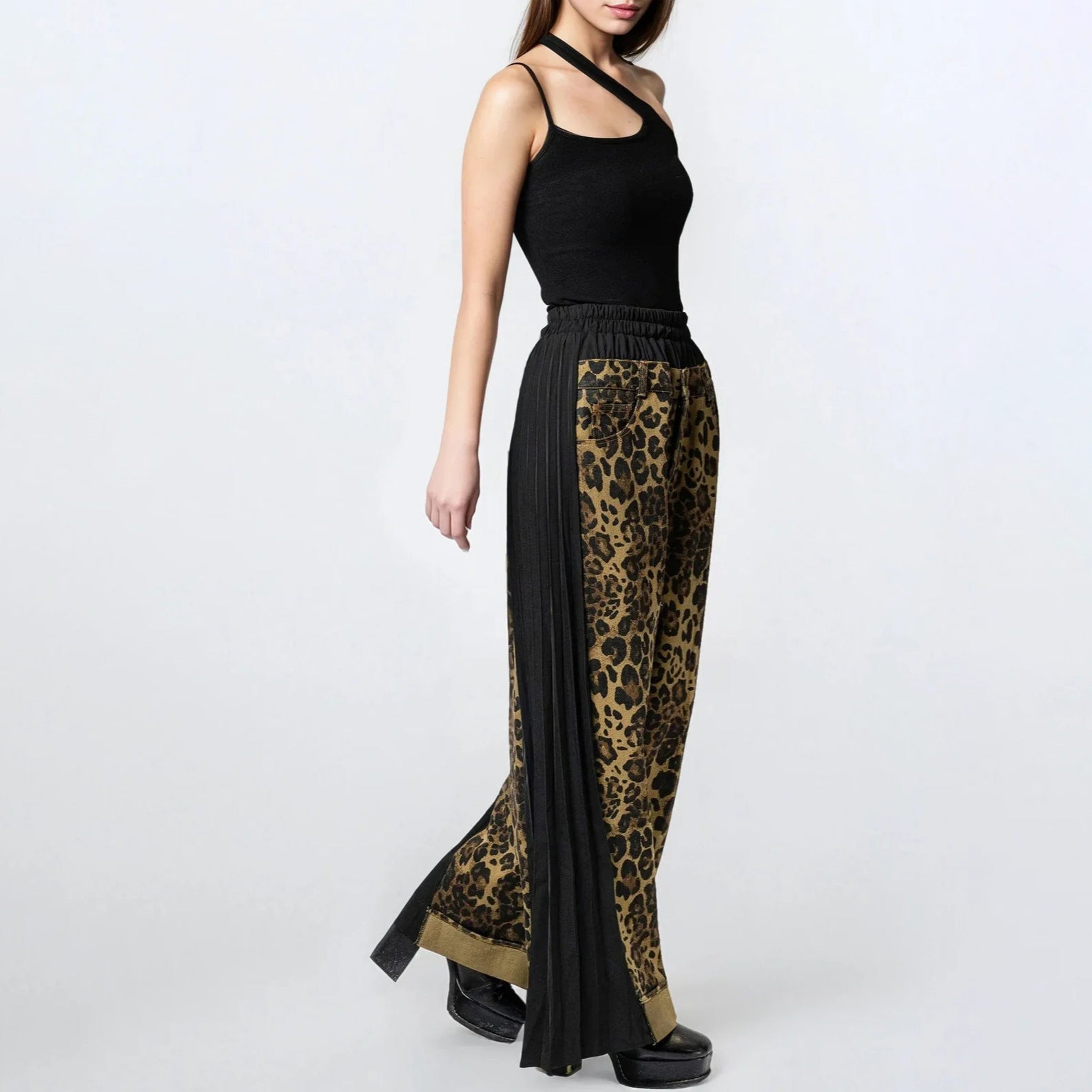 Discover casual elegance with our women's wide-leg pants, adorned with a striking leopard pattern. These pants not only offer a unique look but also maximum comfort due to their elastic waistband and loose fit.