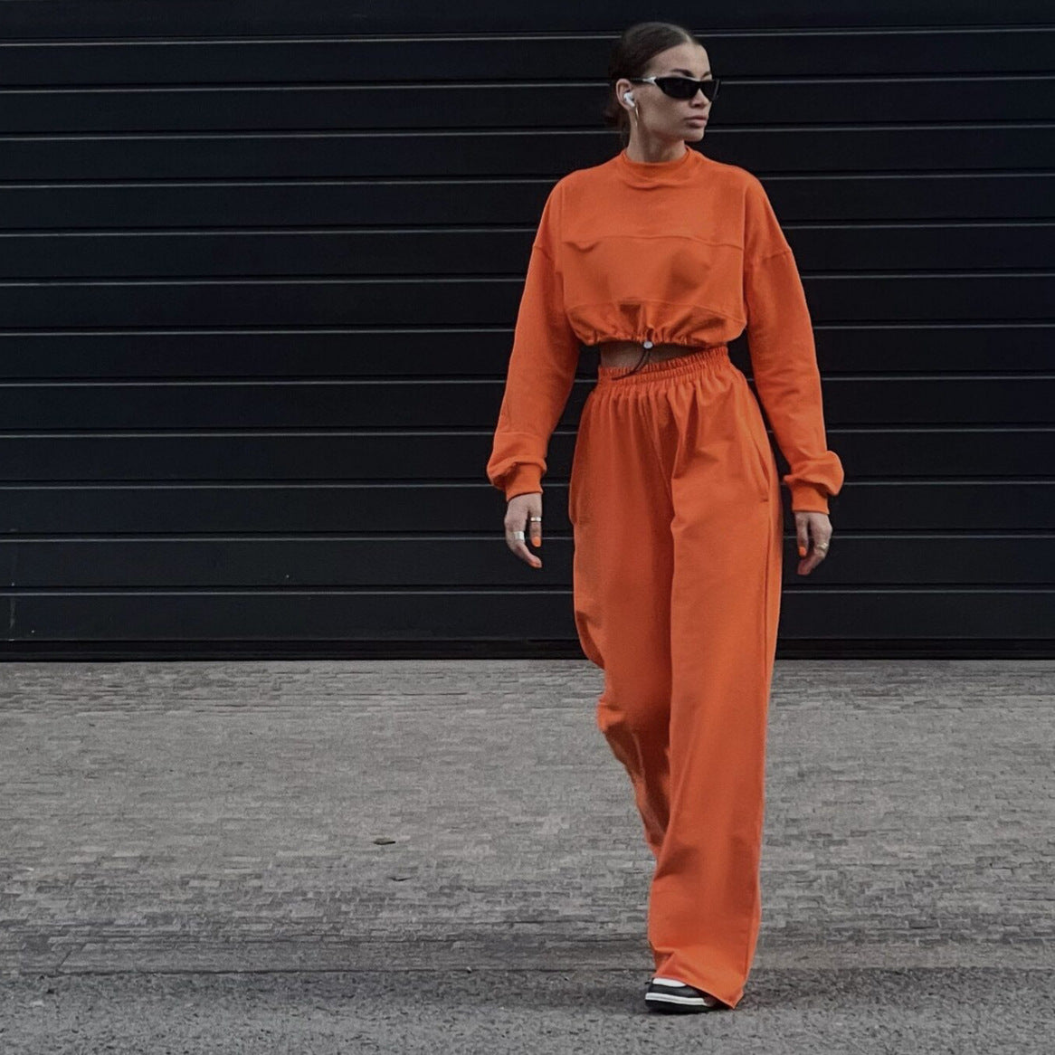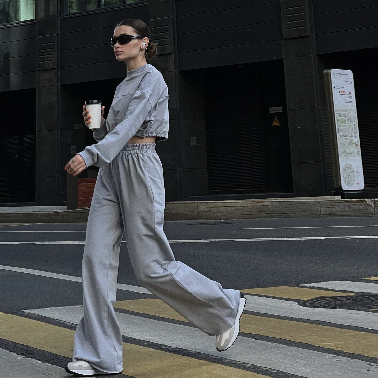 Urban fit sweatpants for women with a casual crop top Chic und Stil