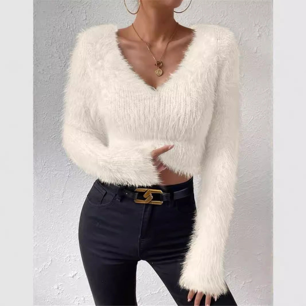 Ladies soft and stylish sweater with a plunging V-neckline and long sleeves Chic and Style