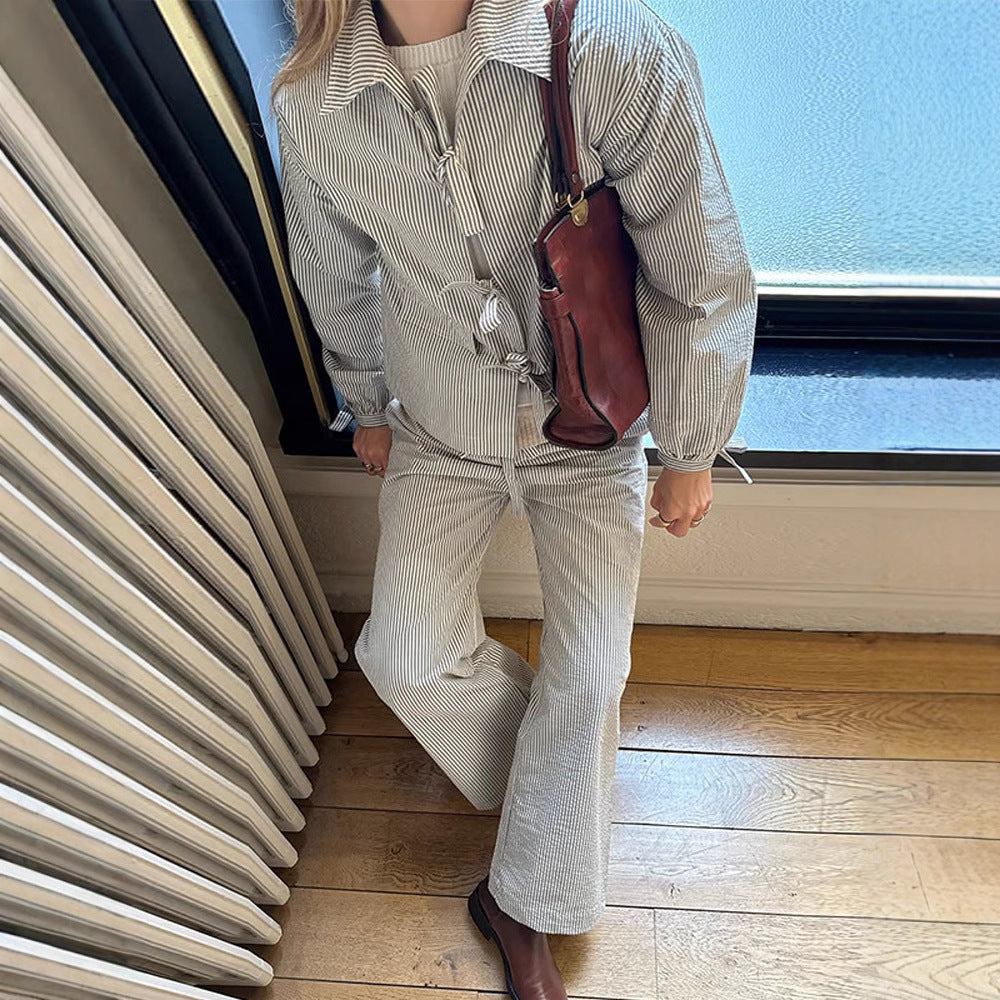 Two-piece women's striped outfit with oversized jacket and wide pants Chic und Stil