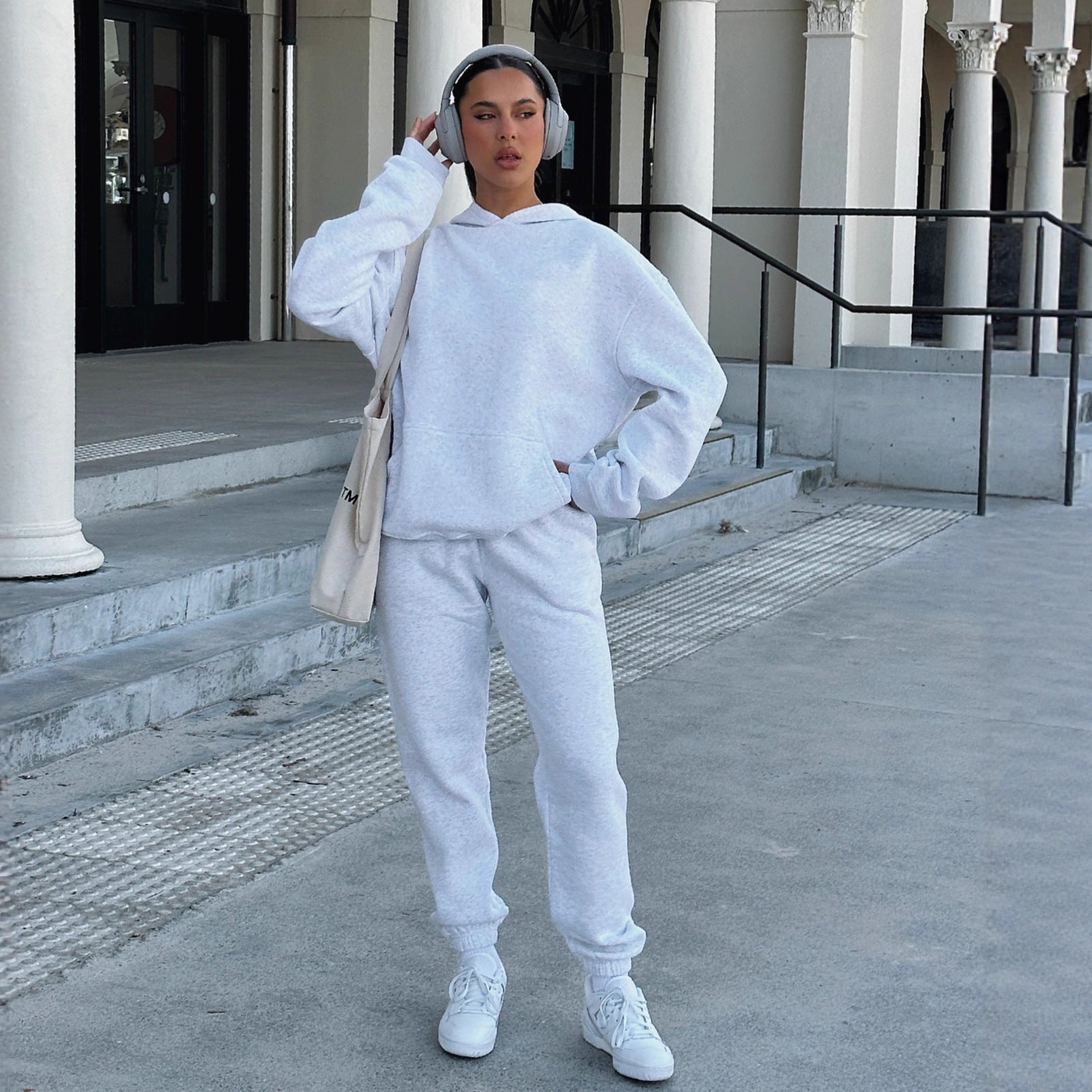 Women oversized casual hoodie with kangaroo pocket and chic tracksuit pants set