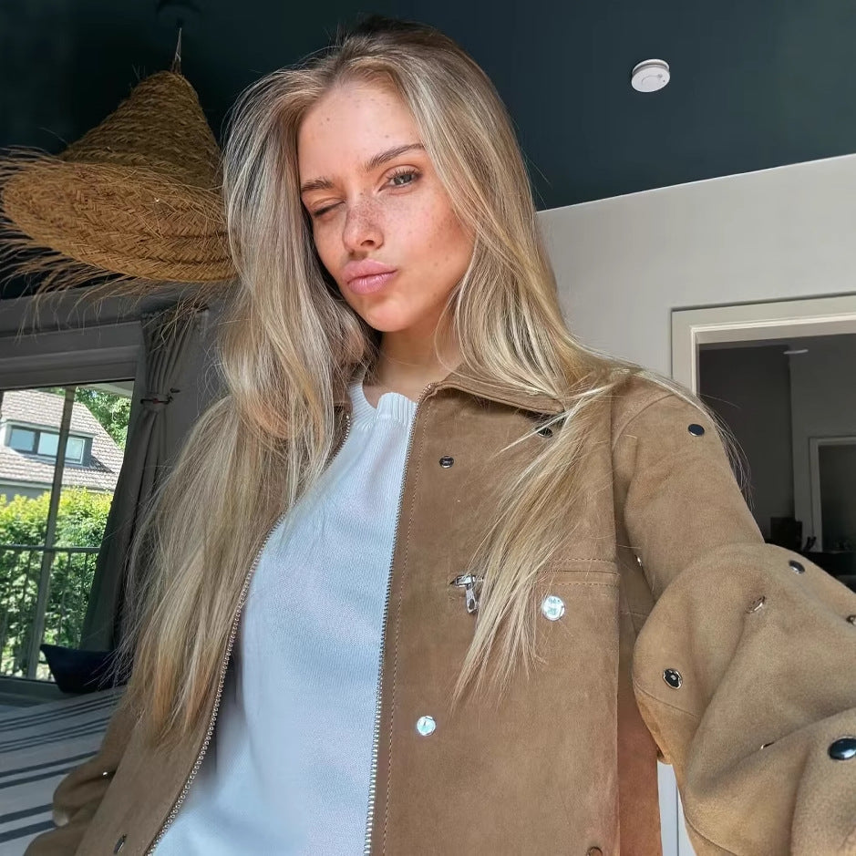 Ladies Fashionable Short Jacket with Studs Chic and Style